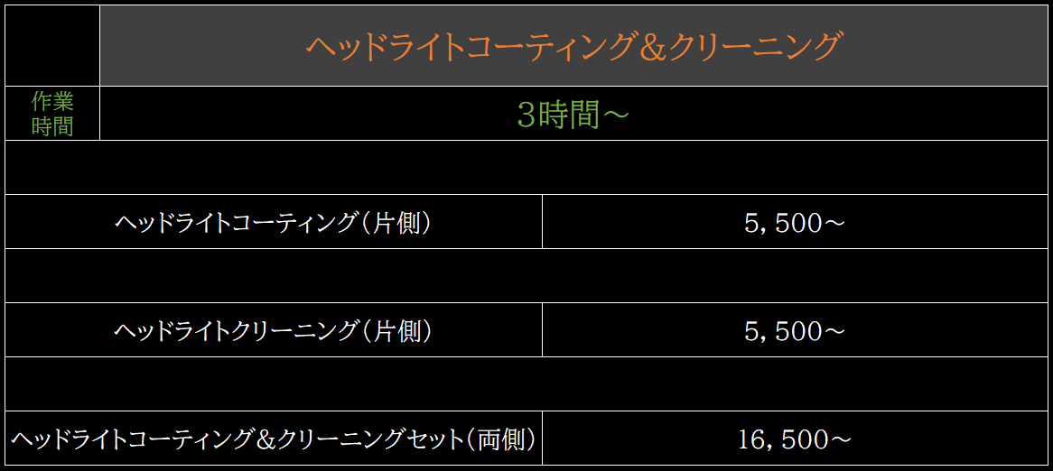 ※ヘッドライトの劣化、黄ばみ状態により、料金が異なります。